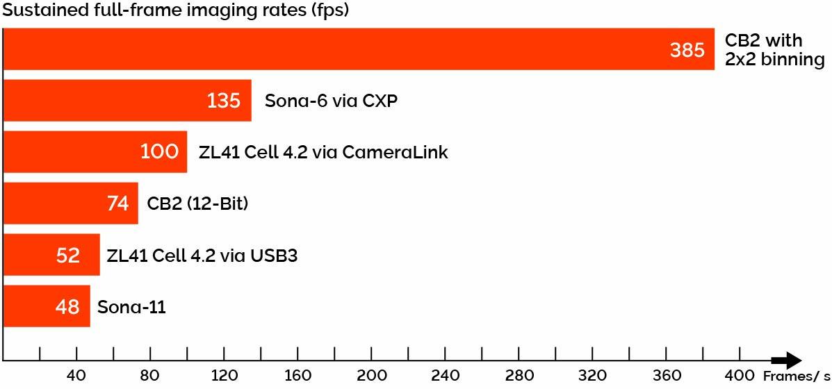 ZL41 Cell与Sona相机通过USB 3接口为多数应用提供高速成像。需要更高速度?